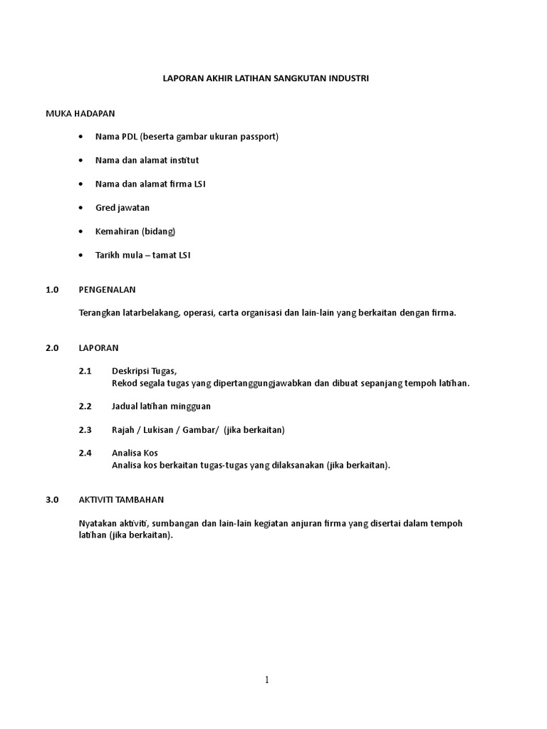 Cara Penulisan Laporan Latihan Industri Langkah Demi Langkah from blog.maukerja.my Laporan latihan industri ini juga dapat memudahkan kerja pensyarah atau aktiviti pelajar semasa menilai pelajar selepas menjalani latihan industri. Beberapa contoh laporan latihan industri dari dalam dan luar negara akan dikongsikan bersama. Nurul nathasya binti mohd mulana 21dip14f1013. Selama 5 bulan disini banyak yang telah saya pelajari dan telah diperolehi semasa menjalani latihan industri dalam bidang pentadbiran laman sesawang dan segala urusan berkaitan teknologi maklumat ini. Latihan industri adalah wajib dijalani oleh semua pelajar di institusi pengajian tinggi awam atau swasta sebagai syarat wajib bagi melayakkan pelajar menerima sijil diploma atau ijazah mengikut jurusan yang diambil. Laporan tersebut adalah mengenai segala. Laporan akhir latihan industri ini dikemukakan kepada pensyarah penilai di jabatan kejuruteraan mekanikal bagi memenuhi sebahagian dari syarat penilaian latihan industri dan penganugerahan diploma kejuruteraan mekanikal politeknik tuanku sultanah bahiyah disember 2012 i. Latihan industri merupakan salah satu syarat yang telah diwajibkan kepada para pelajar politeknik di seluruh malaysia bagi memenuhi sistem pengajian serta sebagai syarat untuk penganugerahan sijil atau diploma yang diiktiraf related searches.